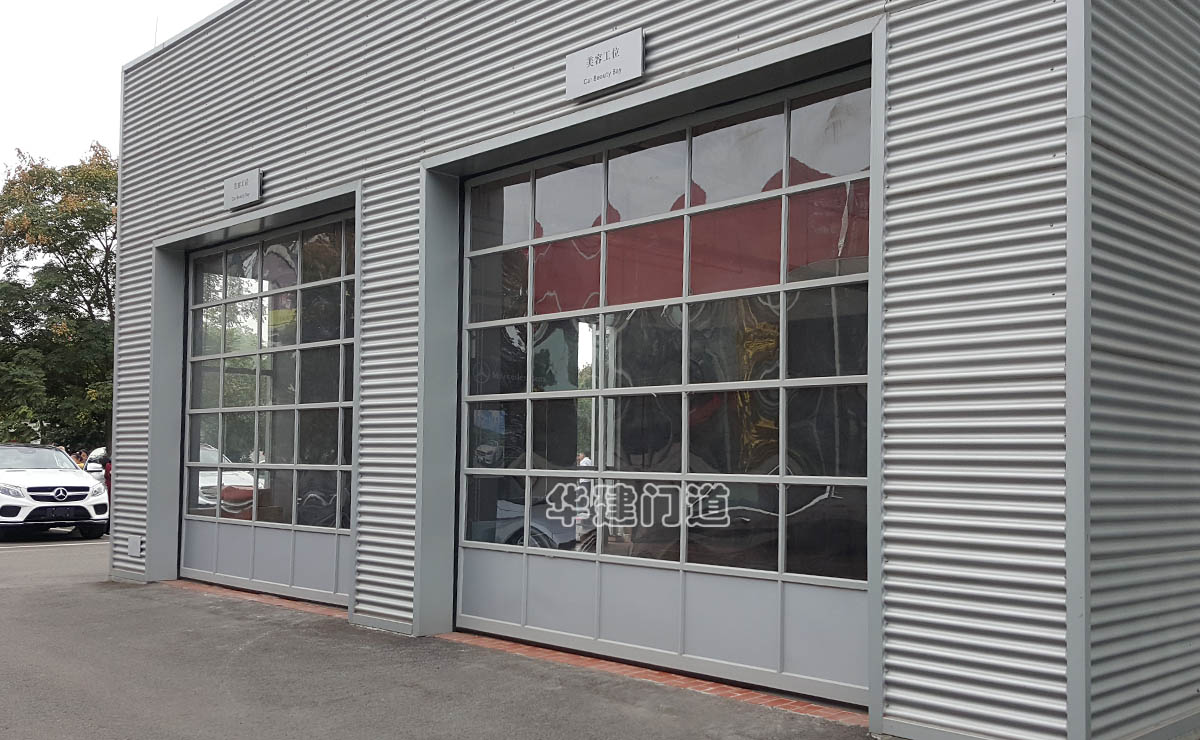 該項目為奔馳4S店項目,門洞尺寸為4000×3600;采用我司透視滑升門;門體為優質鋁合金型材主框,表面按奔馳規范要求噴涂顏色,方格主框內安裝聚碳酸酯板(強度是同樣厚度的鋼化玻璃的幾十倍),門體透視度極高(備件庫不透明);開門機采用出口品質的軸驅開門機;軌道為2.0英寸防脫落軌道,加寬型鉸鏈牢固而穩定;采用60Si2Mn材質高標準雙數扭簧平衡系統,配備防密封條脫落型軌道護軌且采用三元乙丙橡膠密封裝置密封門體四周;配備防斷裂裝置和遇阻保護裝置;開啟方式為垂直提升和高位提升及低位提升三種方式;在實際使用中運行輕便自如,噪音小、美觀大氣,得到客戶及用戶的一致好評!