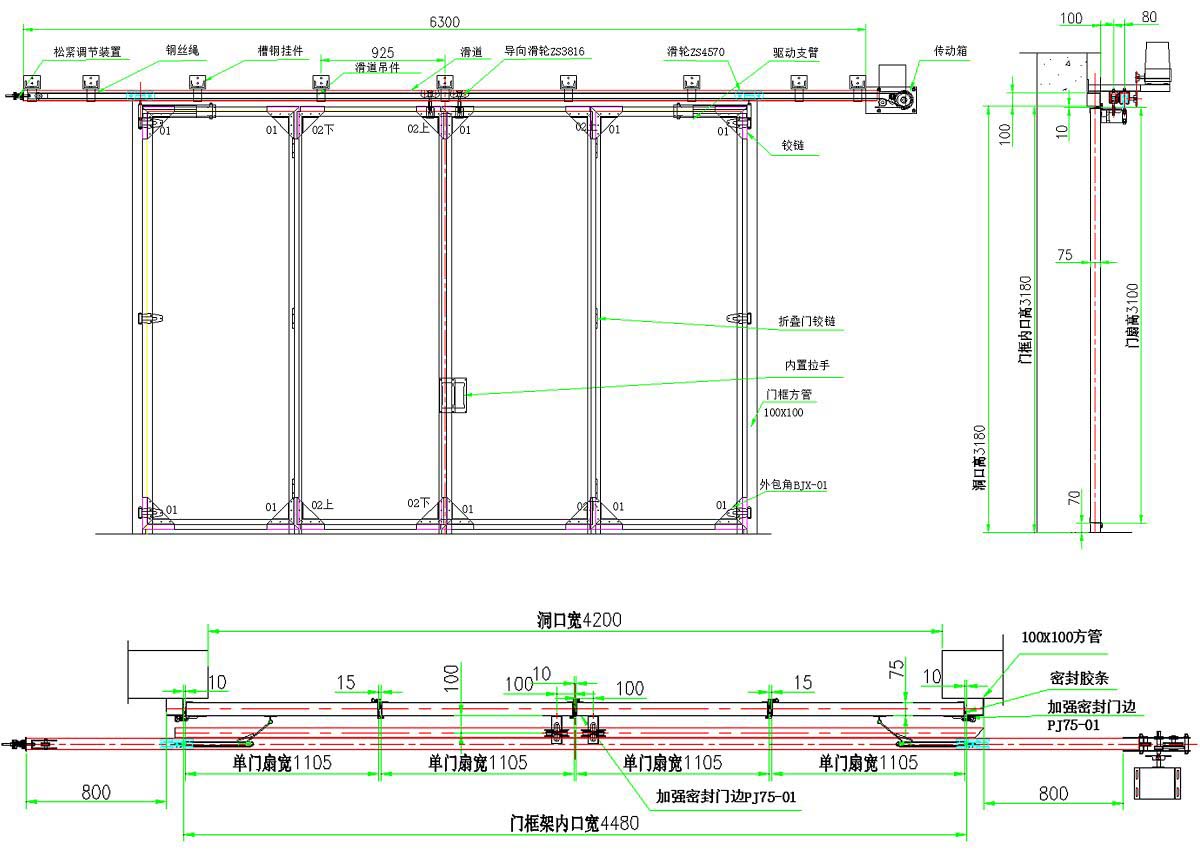 (一)鋁型材電動(dòng)折疊門結(jié)構(gòu)示意圖