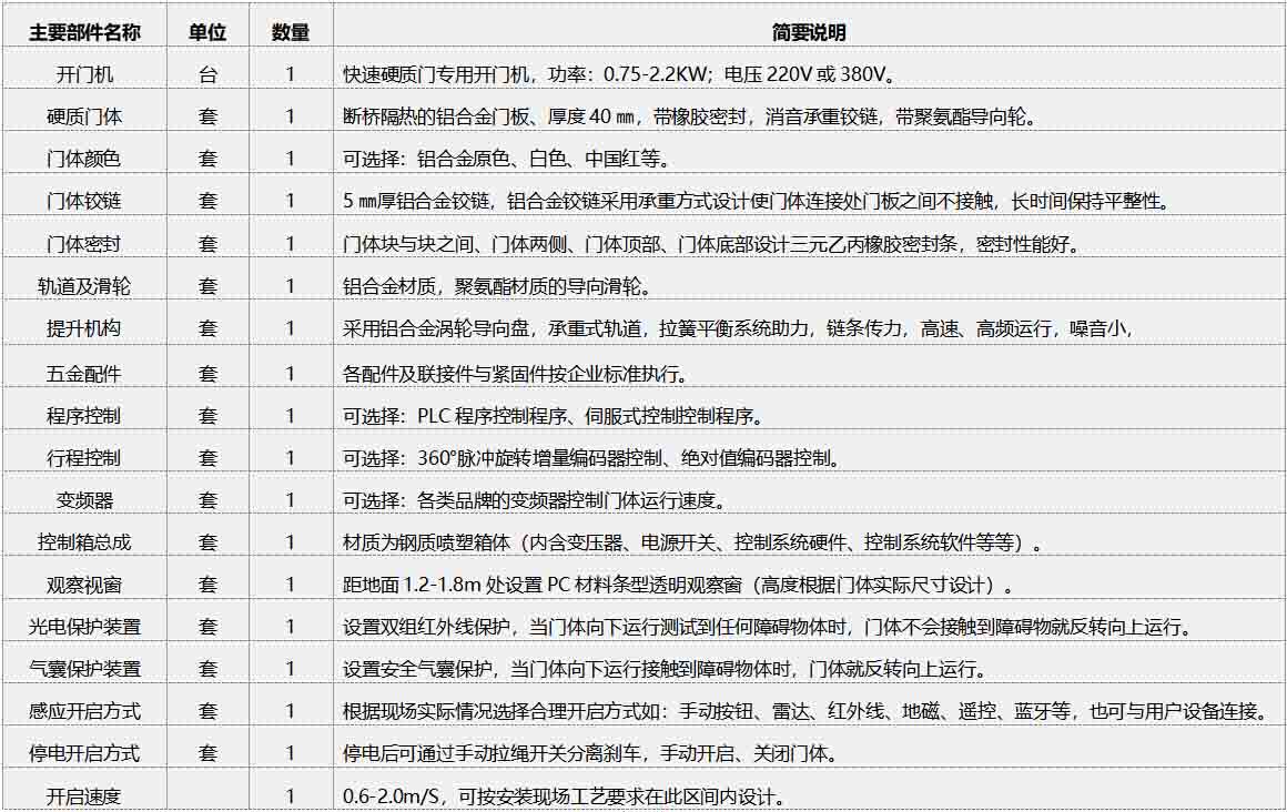 快速硬質(zhì)門部件清單(單樘)及簡述