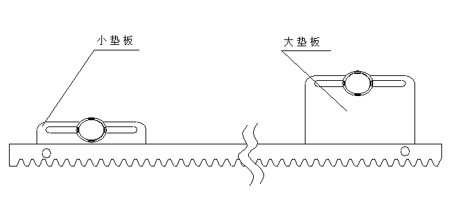 將固定柱焊接在門體上,注意固定柱應排列整齊,保證齒條安裝后的離地高度應符合要求;在裝齒條前先用離合調節手柄將主機的齒形離合器解脫(將離合調節手柄逆時針旋6圈左右);將齒條用螺栓固定在固定柱上,調整齒條上下位置,使齒條與齒輪嚙合正確,并保證1毫米的間隙;調整開門機與齒條的前后位置,保證齒條和齒輪有效嚙合。裝在門上的齒條應排列整齊在同一直線上、齒條的總長度與門體相當。