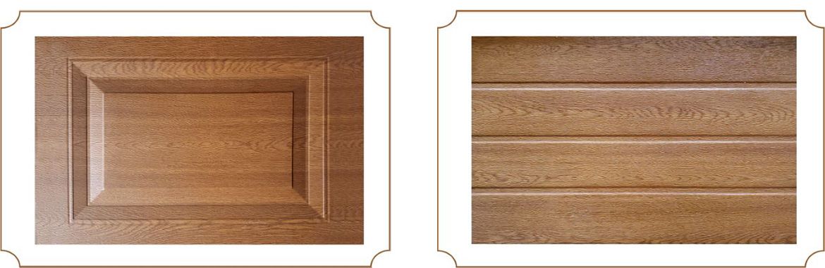 門體款式:門體表面通過熱轉印或覆木紋皮呈現出木質感,再壓立體方格或平槽款式,木質感出眾,與實木同感;